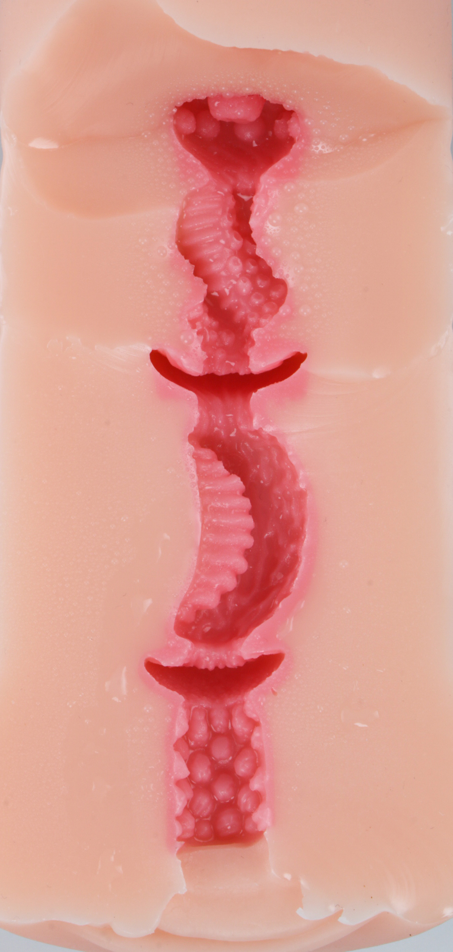 包裹性就是胶体的厚度(也就是前面说的肉感)所带来的最直接的体验,肉越厚包裹性越强,肉壶可以说是专攻这一点,为此也舍弃了包括造型在内的等很多方向。包裹性在我体验过的杯子里名列前茅,这一点与对子哈特的知名刺激型杯子工口姐姐很相似(但肯定没有工口姐姐那么紧,毕竟产品定位不一样,别较真,懂我意思就行),紧窄的通道让单个手指的进入都变的十分困难,但是因为胶体更软,所以使用门槛就变得更低,新人也可以很好的沉浸其中。