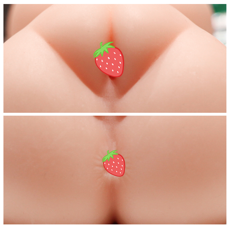 通道入口方面,馒头型的前通道入口做得非常突出,有种骆驼趾的感觉了,只看下体的话,非常的嫩,有种萝莉的感觉。后通道入口就是一个小圆孔,周围简单做了一些拟真的细纹,这个圆孔非常小,建议在使用的时候多抹一些润滑油,要不然可能不太好进入。
