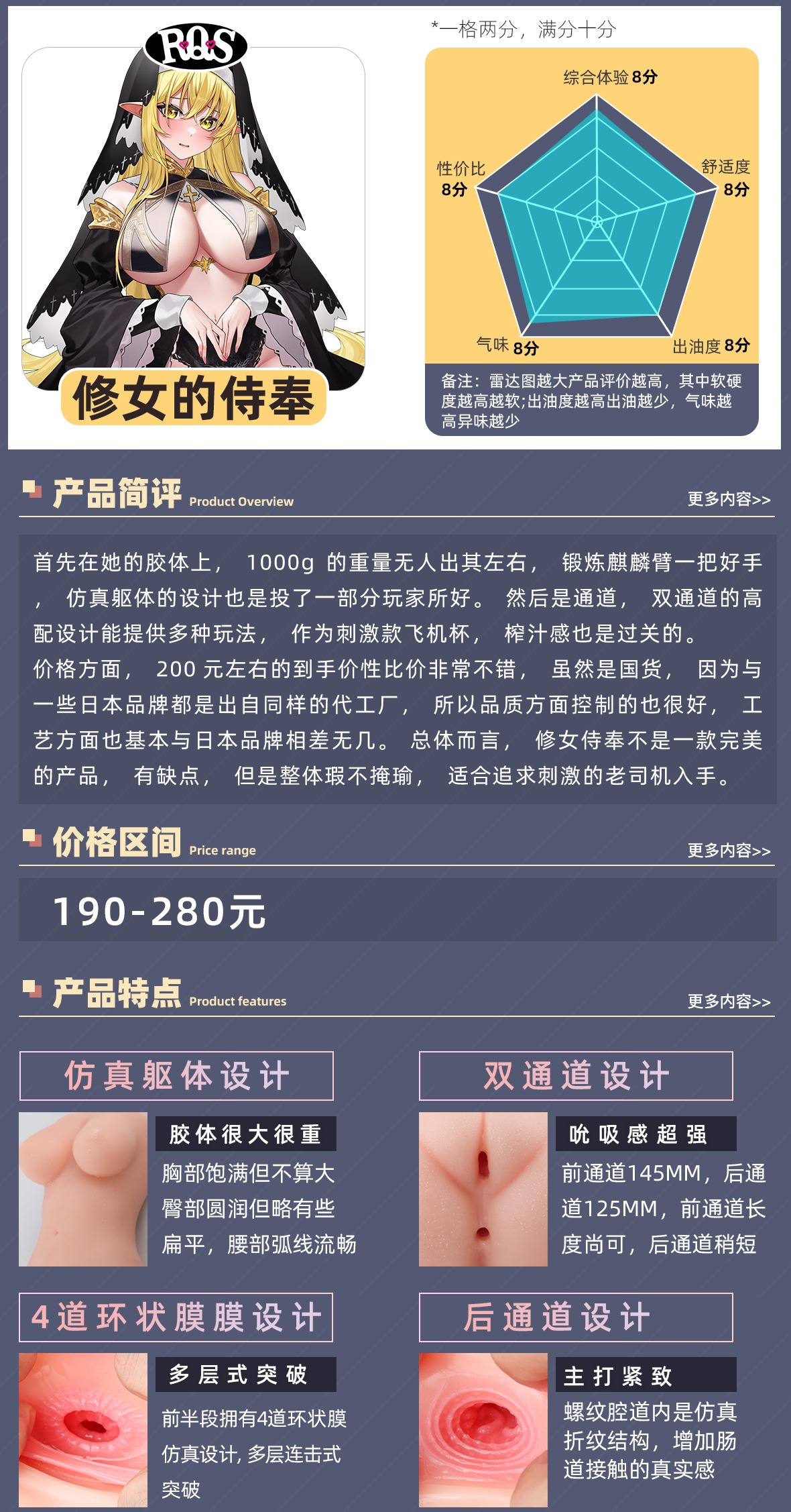 说到底,其实就是利用传统认识上人设和臆想的反差,带来一种反套路的冲击,也就是所谓的反差感,但不得不承认,这样的题材还是很吸引人的。那么,今天我们就顺水推舟,来测一个禁断角色的反差产品——修女的侍奉。