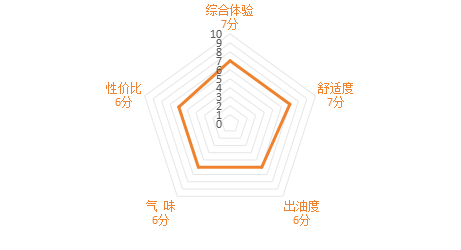 备注:雷达图越大产品评价越高,其中软硬度越高越软;出油度越高出油越少;气味越高异味越少。