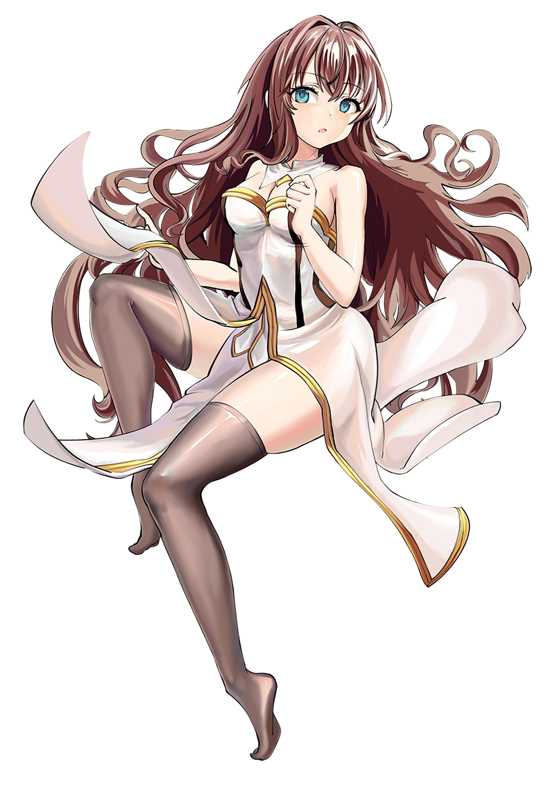 人物立绘是一名长发美少女,姿势像是骑在魔法扫把上(自行想象),白色裙摆随风飘扬,看起来没有什么特色,唯一吸引人的点可能就是过膝的黑丝了,但这个画面又把很多高光和反光刻画的特别重,画风显得又有点奇怪(剑灵知道不,就是类似那种油腻腻的韩国网游的感觉)。