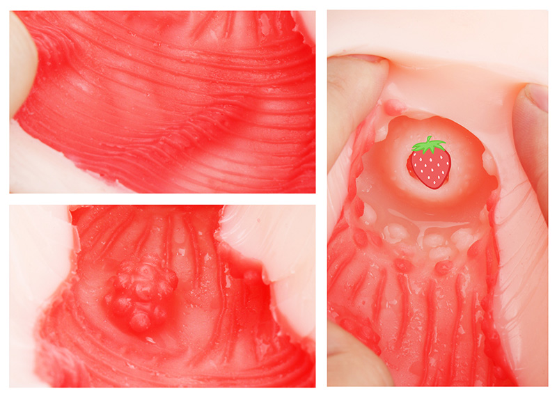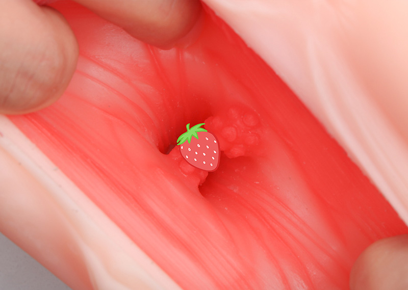 入口前端采用了三重螺旋的横纹设计,以增强杯子的榨汁感,随后进入中段空腔,空腔内有一个大型G点肉粒,提升玩家进入后的摩擦感,尾端为子宫区,有一颗类似火山口形状的子宫,周围则是一圈小型凸点肉粒。