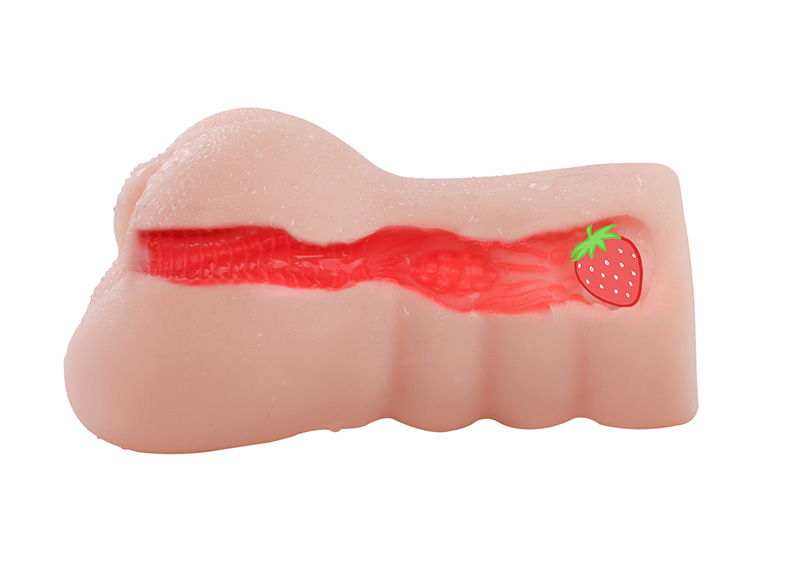 下半部分采用了仿真拟人的设计,入口周围做的很大很饱满,并有类真人的细纹褶皱(说实话,其实并不是很美观,有些显老......),不过入口处的肉片等部位倒是做的很真实,类似肉体的不规律弯曲做的非常自然。屁股部分为了凸显入口,显然做了阉割处理,略有违和感。