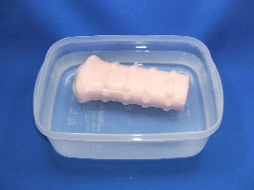 然后在把胶体放进容器当中。用温水将飞机杯加温两三分钟即可。加温的时候可以把通道撑开,让热水扑进去,这样等下通道也是热热暖暖的。