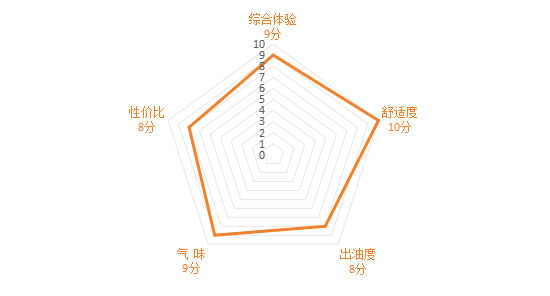备注:雷达图越大产品评价越高,其中软硬度越高越软;出油度越高出油越少;气味越高异味越少。