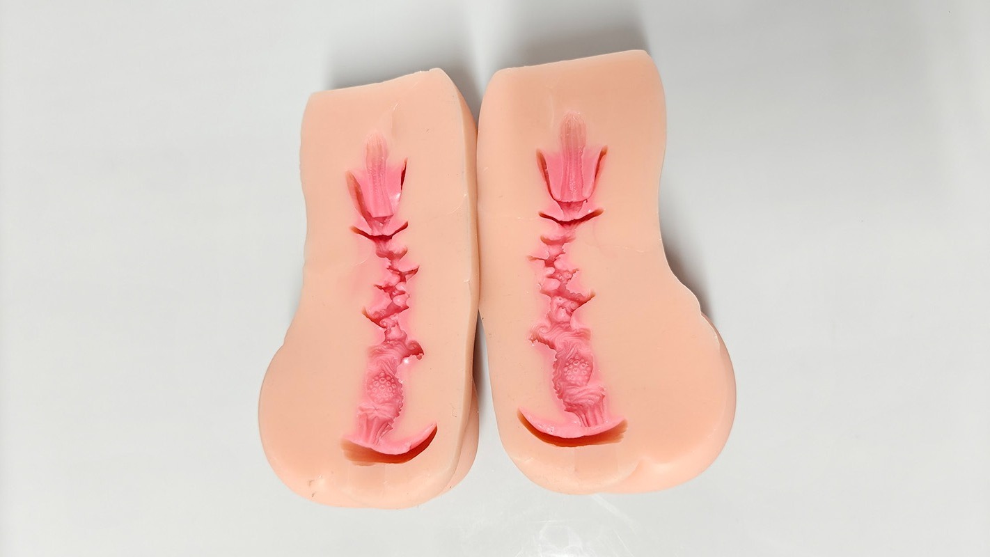 通道长13.5cm,入口有肉粒当作阻力,内部设计比较复杂,主要以交错的肉脊为主,然后用一些褶皱、纹路、和颗粒作为辅助。看着的时候脑补了一下觉得会被剐蹭的很舒服,但是实际体验的时候没用感觉到辅助肉纹有很强的剐蹭......可能是辅助肉纹有点小的缘故,导致剐蹭感降低了,并且使用几次后好像把小的颗粒冲烂了......有细碎的颗粒沾上了二弟