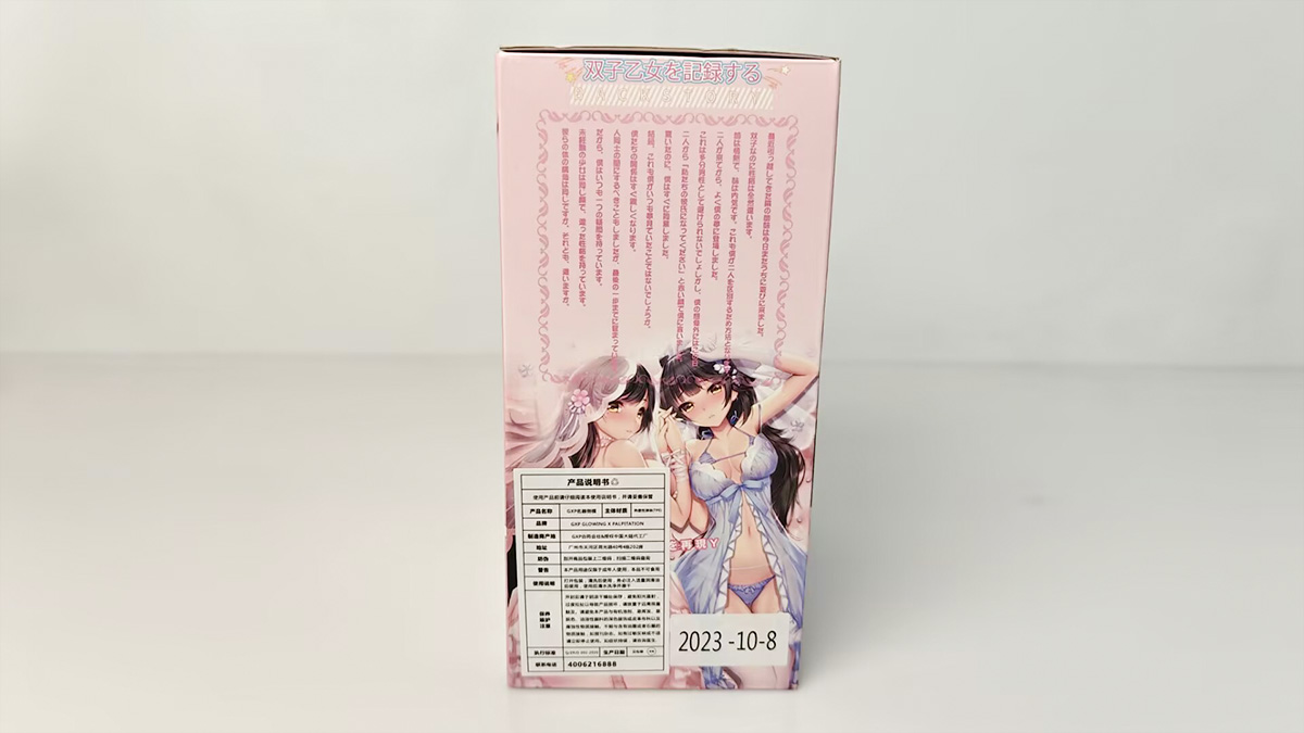 GXP的双子乙女是双胞胎人设的飞机杯,分别是姐姐花音和妹妹千奈,两款杯杯的造型和通道一样,仅有材质软硬度的区别,姐姐花音偏刺激,妹妹叫千奈偏慢玩,目前已出到第二代,共4款产品,而且二代整体比一代刺激度更高。今天我们测评的一代千奈是其中刺激度最低的一款。