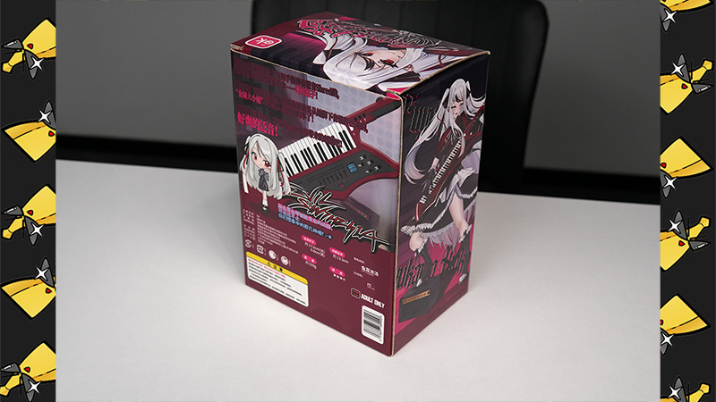 拿出盒子映入眼帘的是一位身穿哥特演出服的银色双马尾少女,手持钢琴(Shred),一边流汗一边哈气,貌似是经历了一场激情的演奏。