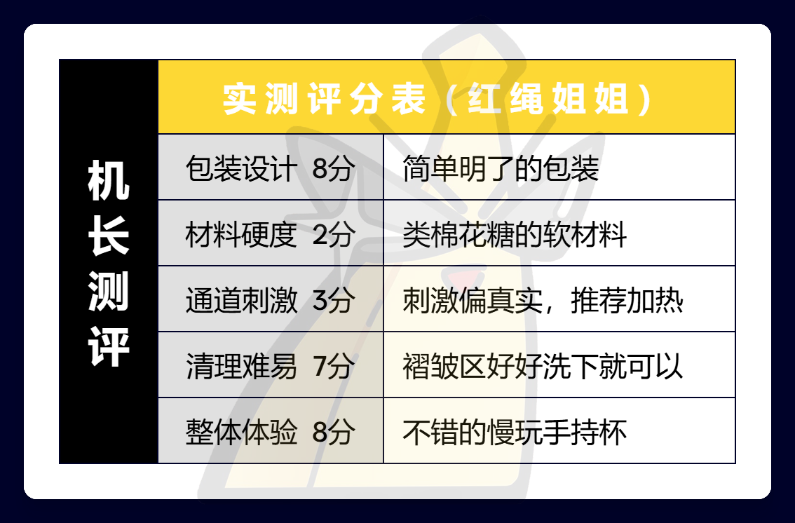不过现在的刺激感对于一款慢玩杯已经是比较合格的了,推荐给刚入坑的新手或想慢玩锻炼的老手,使用时记得要加热哦。