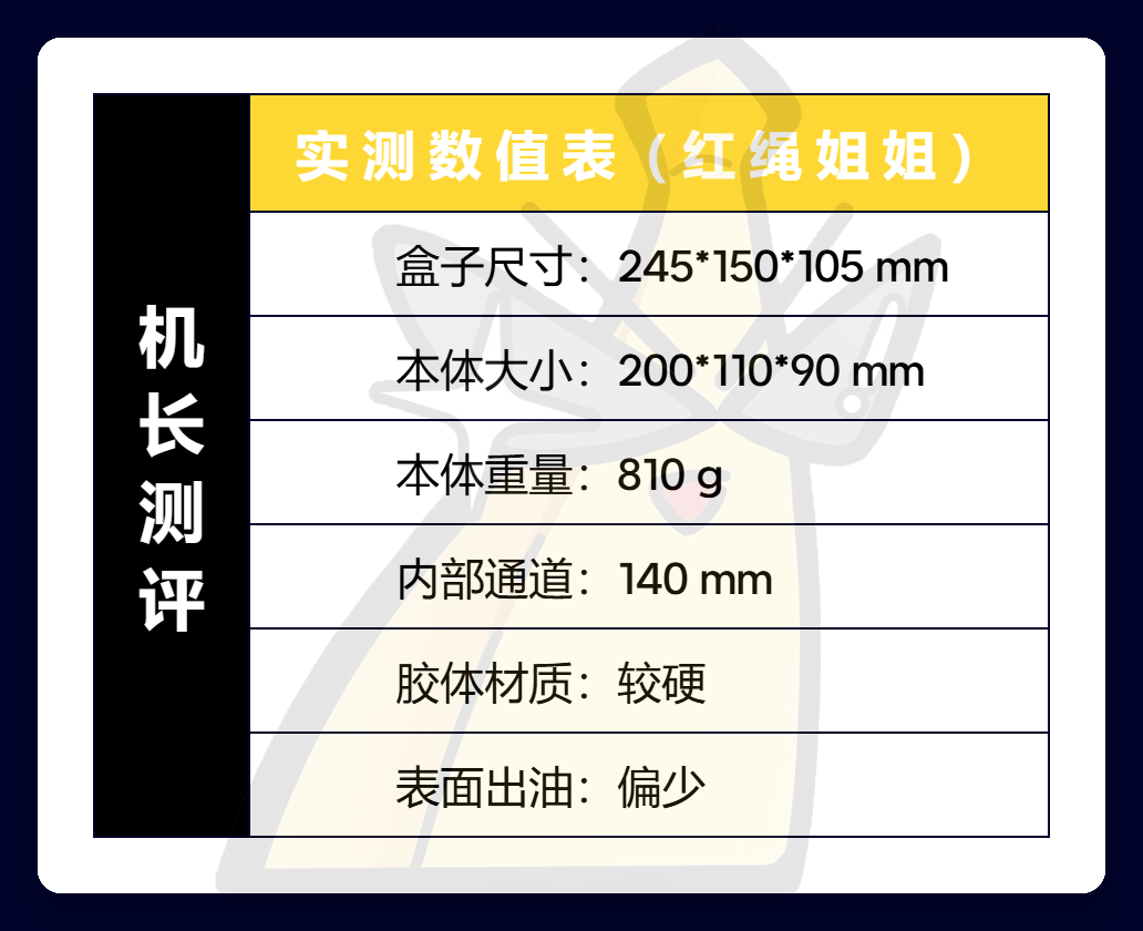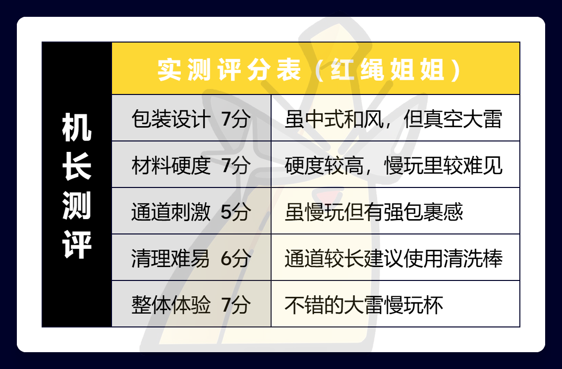 虽然内部通道的颗粒都不算很大,官方标的也是慢玩,但是较硬的材料确确实实提供了拉满的包裹感,再加上排气法的吸力,实际上刺激感算得上是偏向中刺激的了。
