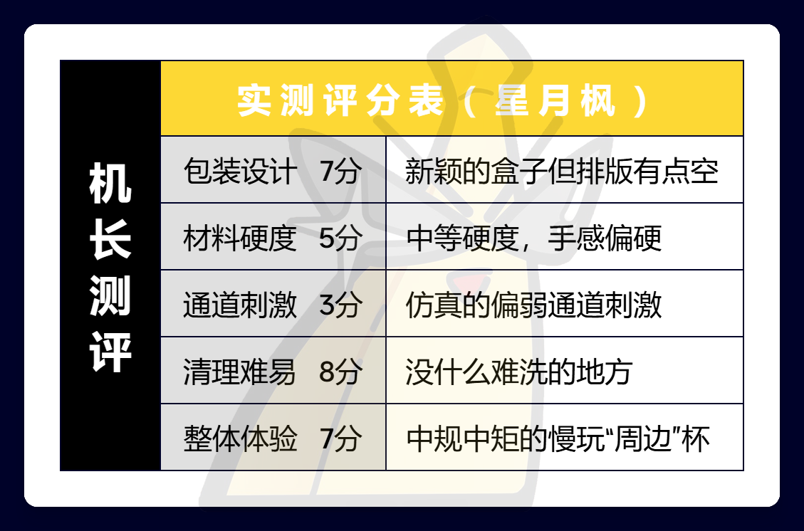 以正面位排气后进入通道,整体刺激度偏低,但因为外部中等硬度的材料,又提升了些,算是慢玩杯中偏上的了(这种搭配有点像“约束三代”,也是这种设计的偏硬料慢玩款)。