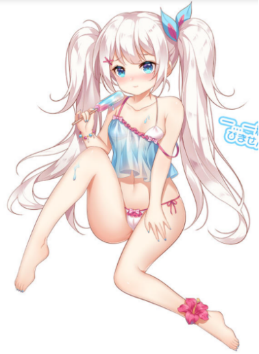 身穿mini比基尼的双马尾妹子手持冰棒,