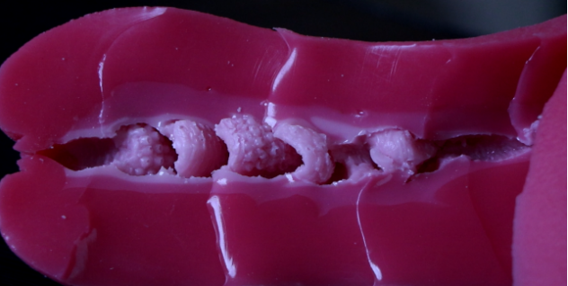 胶体两侧均有很深的缝隙,整个看起来非常像整块的猪腰子,