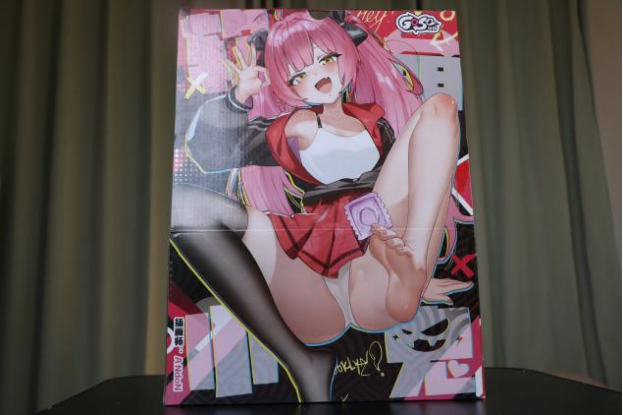 箱子整体偏扁一,封面是地雷系打扮的双马尾粉毛妹,